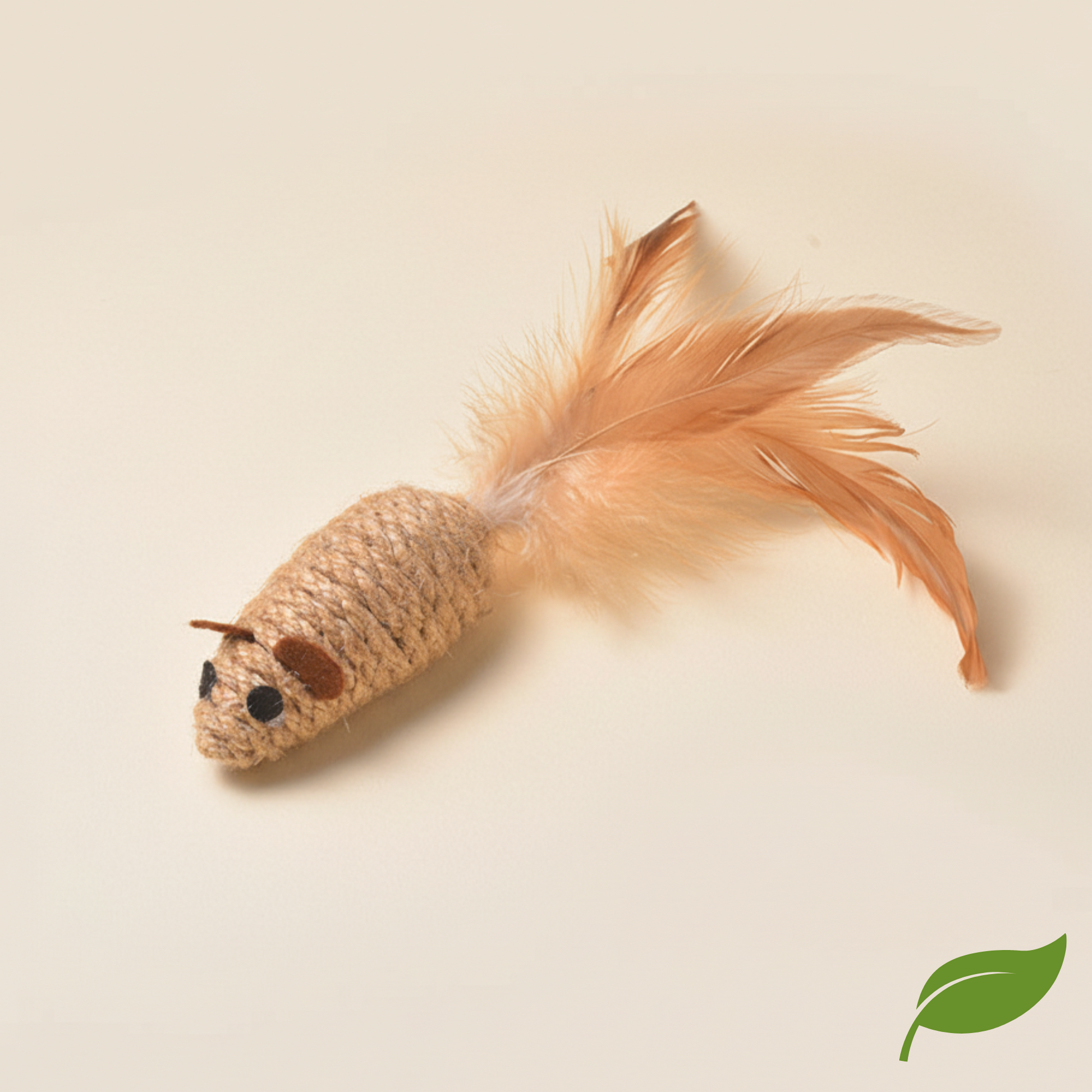 A timeless plaything woven from the earth’s quiet strength. The Cordelia Cat Toy is crafted with natural hemp rope, its textured surface calls your whiskered hunter’s instincts. Feather plumes trail behind like a whisper of woodland wings, inviting leaps, pounces, and playful pursuit.